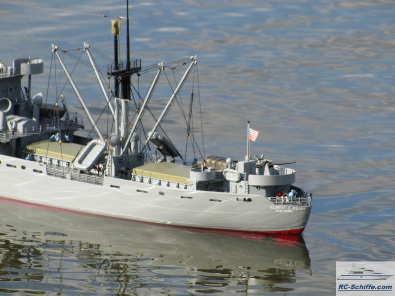 | Tipps für den Bau | Das Modell ist ein Bausatz von Deans Marine, die Beschläge waren kaum zu gebrauchen und wurden durch zugekaufte Teile ausgetauscht. Ladebaeume, Masten und Relingstützen wurden aus Messingrohren / Drähte ersetzt. |