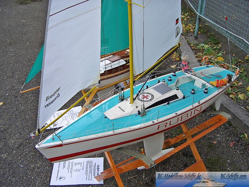 | Tipps für den Bau | Das Modell wurde 1995 aus dem Graupner Baukasten (Best. Nr. 2190) entsprechend der beiliegenden Baubeschreibung angefertigt. Es lässt sich von Leicht bis Starkwind gut segeln, man sollte sich noch den Sturm-Segel Satz zulegen. Bei sehr starkem Wind kann man die RUBIN auch nur mit der Fock segeln. |