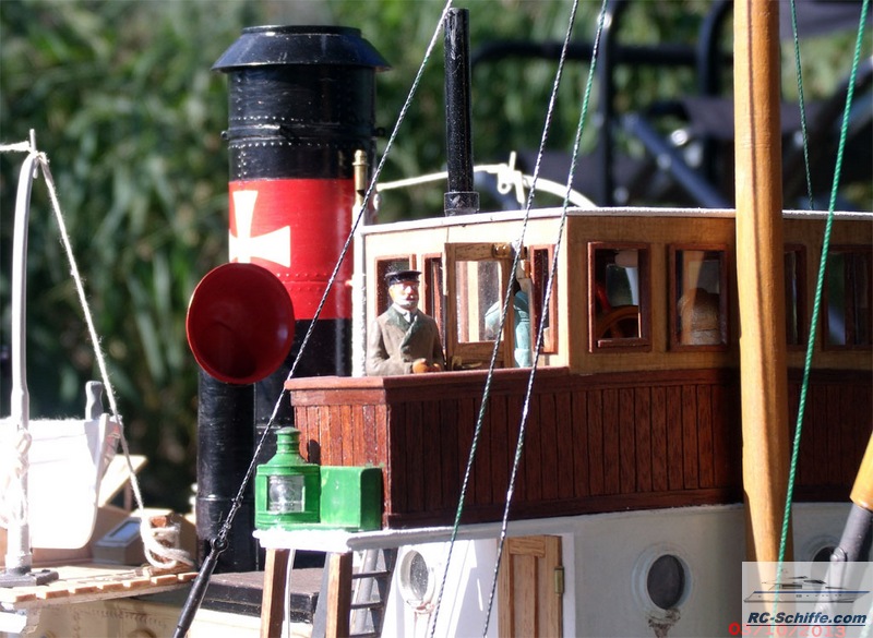 | Besonderheiten | Beier Soundmodul USM-RC-2 Geräusche: Kesselfeuer/Dampfmaschine-Leerlauf-Ein-Auskuppeln + Drehzahlabhängig div.andere Geräusche zufällig oder geschaltet, + WAW Player vor und rück, Positionsleuchten, Ankerlicht, Decks und Kabinenbeleuchtung Rauchgenerator - Ultraschall (Pizo) Wasservernebler - 24V mit Gebläse Spannungswandler 12 auf 24V Kühlwasser Austritt durch Zahnradpumpe |