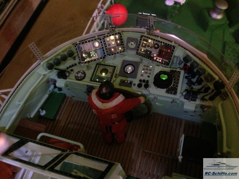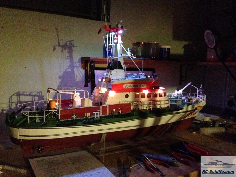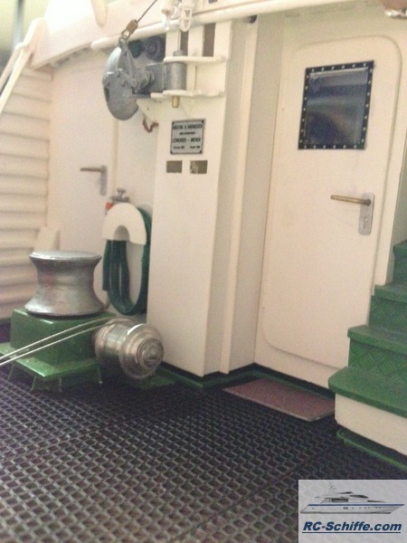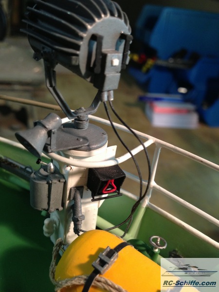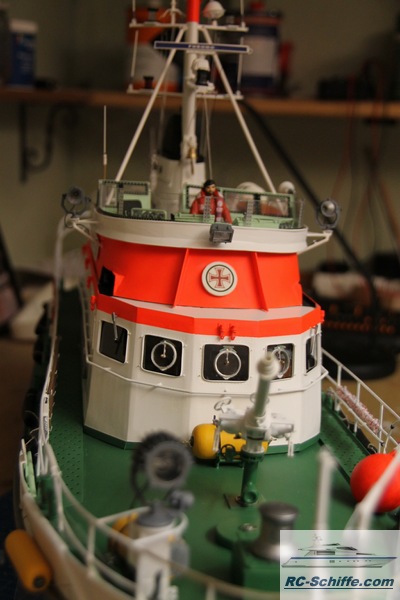- Löschkanone drehbar und regelbarer Wasserstrahl - Beleuchtung schaltbar in: - Positionsbeleuchtung, - Deckscheinwerfer mit LED, Mast und Aufbau, - Suchscheinwerfer oben LED beleuchtet, - Suchscheinwerfer vorne, - Decks- und - Innenbeleuchtung, - Steuerstandbeleuchtung oben, - Steuerstandbeleuchtung innen, - Schleppzugbeleuchtung, - Suchscheinwerfer vorne drehbar - Radar - Soundmodul mit Nebelhorn, Motorgeräusch, Glocke, Hydraulik, Möwengeschrei, Diverse Zufallsgeräusche, Funksprüche usw. - Tochterboot zu Wasser lassen - wieder aufnehmen - Tochterboot fahren – lenken - Tochterboot Positionsbeleuchtung |