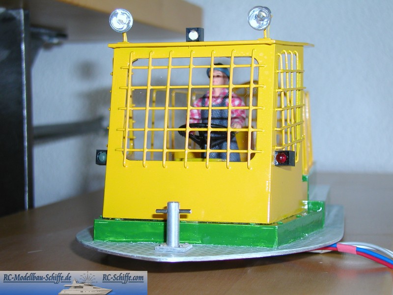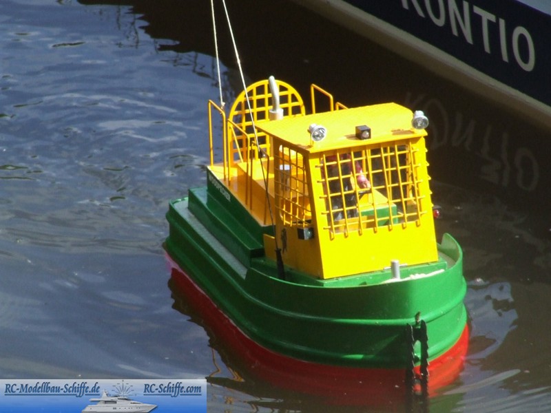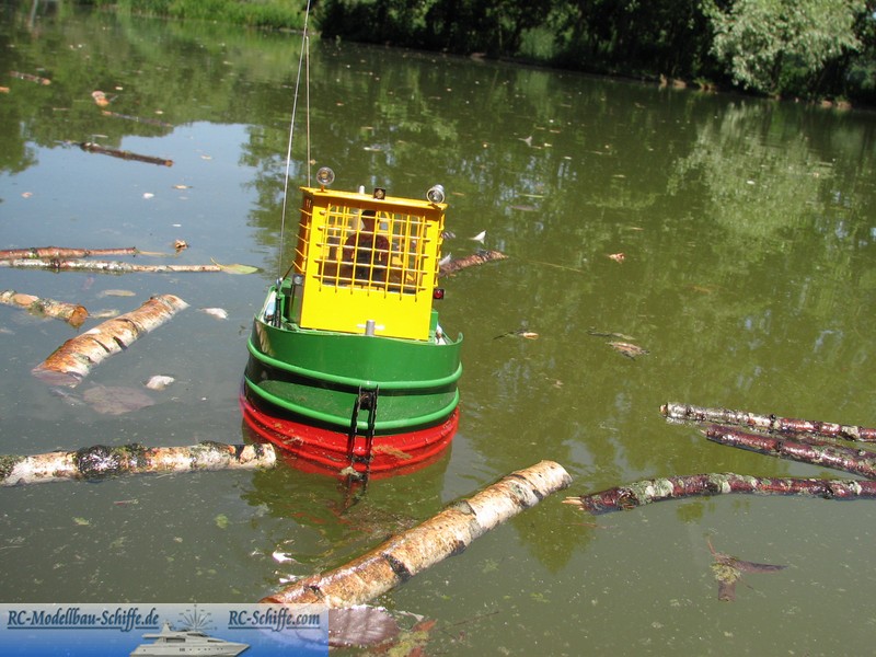 | Besonderheiten | Der E-Motor treibt über einen Zahnriemen einen Graupner Rotorprop an, welcher 240 Grad Drehbar ist und dem Modell eine gute Manöverierbarkeit gibt. Befeuerung und Scheinwerfer können zugeschaltet werden. Die Fenster sind mit Gitter gegen Holzsplitter und Aeste geschützt. Im Bug eine Doppelstange mit Zähnen um die Holzstämme sicher zu halten. |